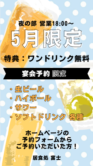 【5月限定】 ワンドリンク無料のご予約特典
